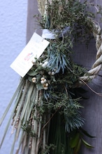 使用花材 松、稲穂、しだ、南京ハゼ しめ縄 他